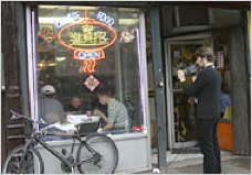 The filming was done with a discreet handheld digital camera similar to those sometimes used in documentary filmmaking, and the entire restaurant was outfitted with microphones. As a result, some of the “customers” in “Take Out” are actual patrons of the restaurant, who were asked to sign releases afterward. And one of the leads in the film, Big Sister, is the woman who actually worked in the restaurant answering the phones, Wang-Thye Lee.